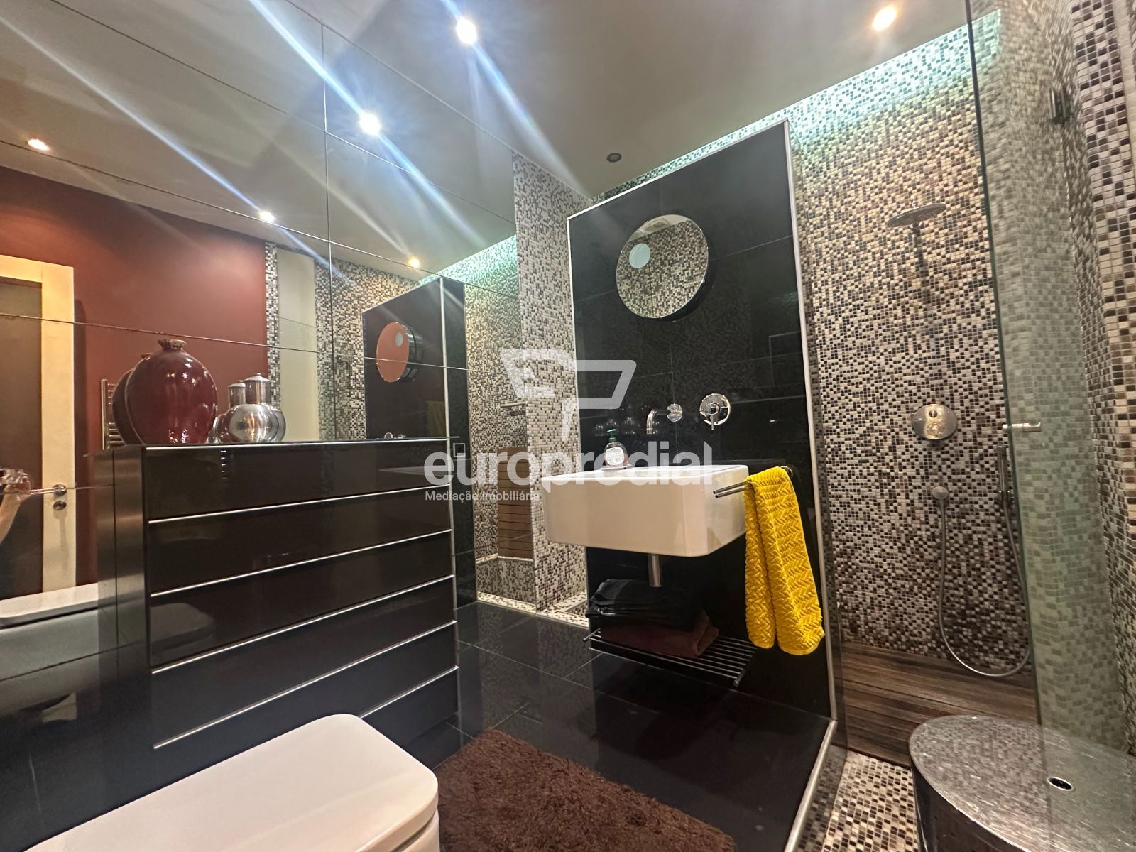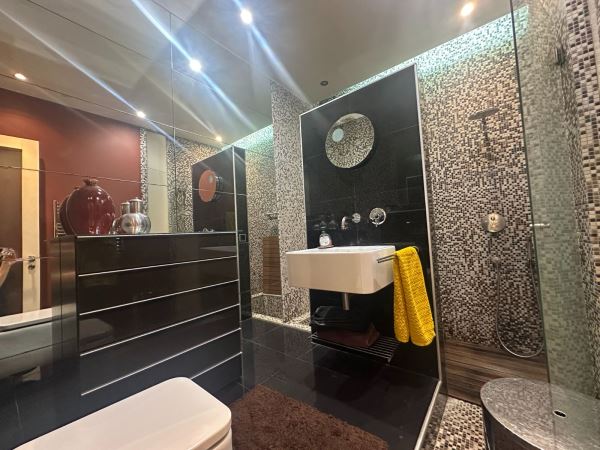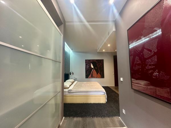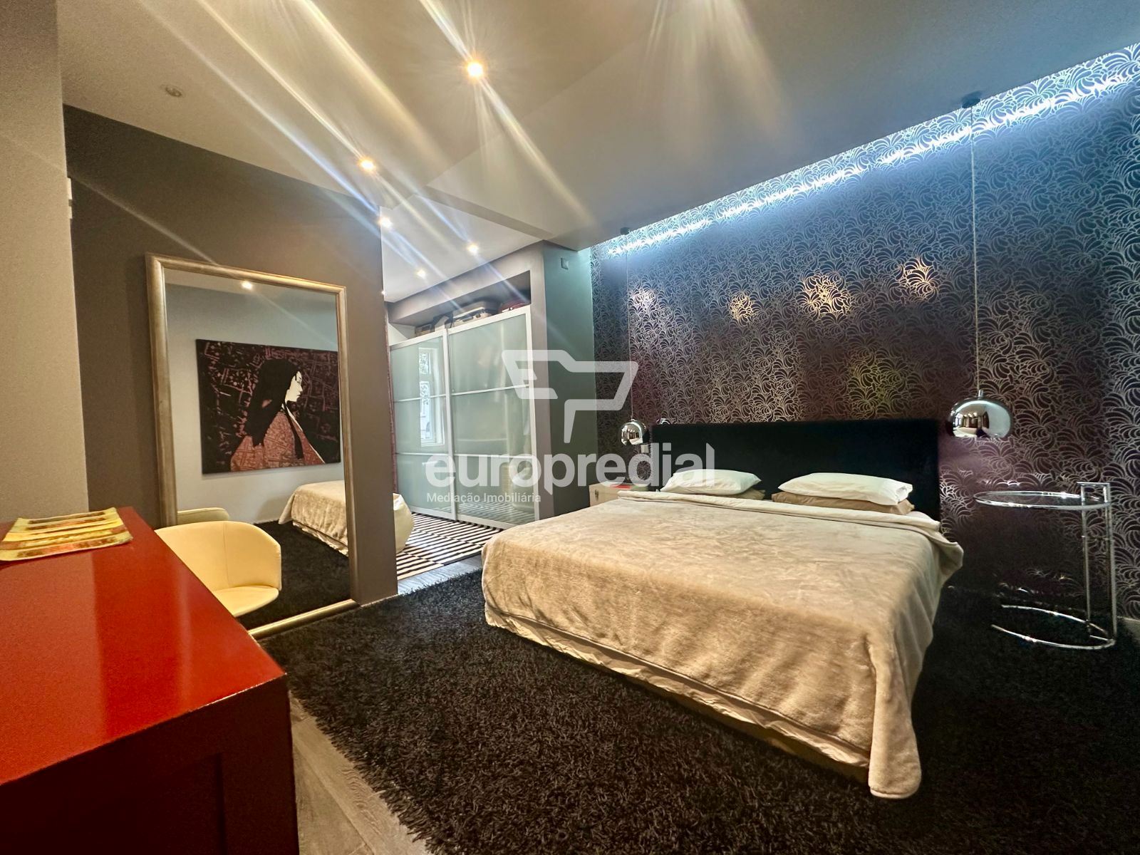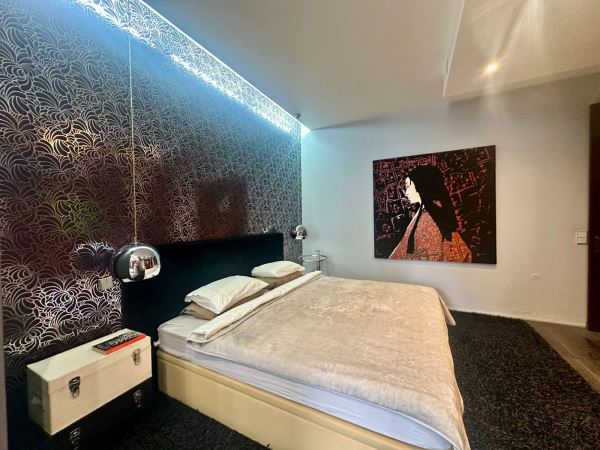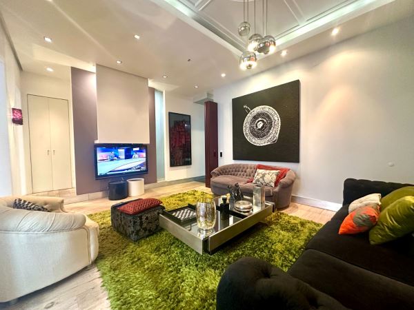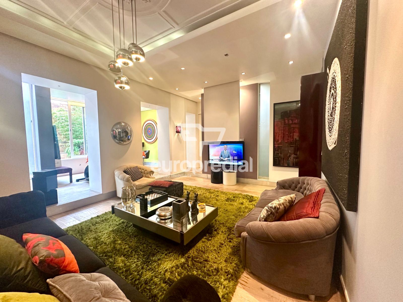 A decoração combina peças de arte cuidadosamente selecionadas com elementos de inspiração nipónica, criando um ambiente envolvente, luminoso e acolhedor. A fluidez entre a sala de estar, a sala de jantar e o pequeno jardim exterior confere uma sensação de continuidade e de vivência natural, ideal para momentos de descanso ou convívio.