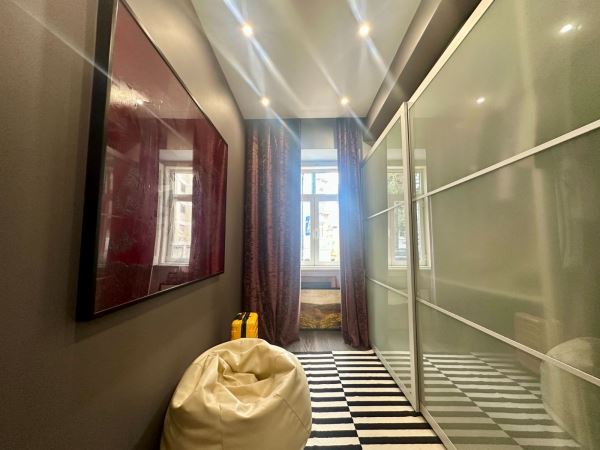 Situado ao nível do rés-do-chão, o apartamento usufrui de uma atmosfera tranquila e reservada, surpreendendo pela serenidade que oferece em plena zona central da cidade.