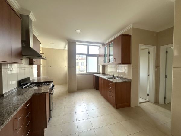 Com uma área útil de 142 m2, distribuídos por duas salas com acesso a varanda comum, amplo hall, cozinha semi-equipada, despensa, escritório, 2 casas de banho completas, 3 quartos e closet.